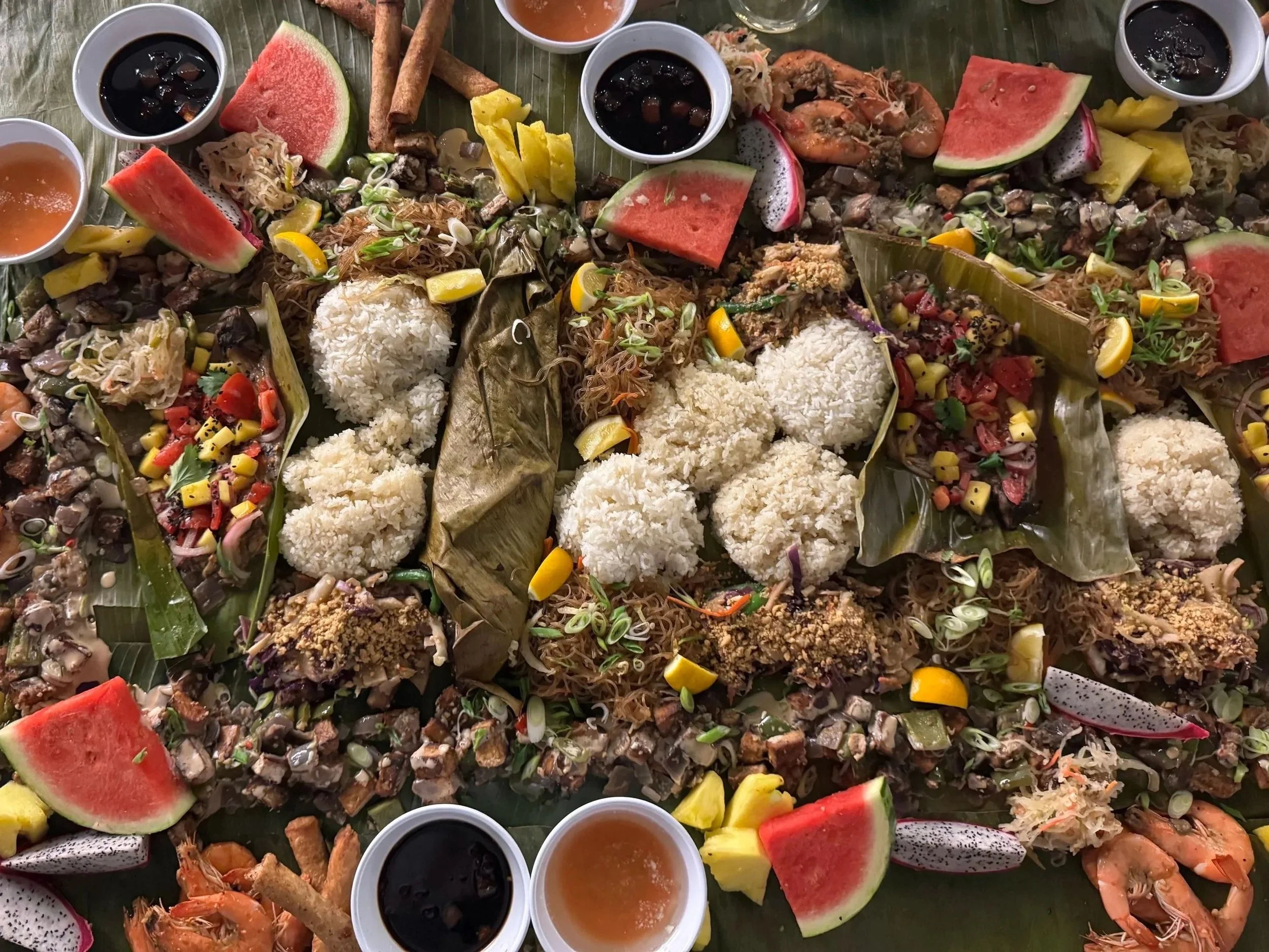 Upgrade your meal to a Kamayan Table, where Chef Chris transforms your main course, vegetable dishes, and rice into a stunning communal display atop traditional banana leaves. Your guests will immerse themselves in Filipino culture as they learn the pre-colonial art of eating with their hands in this truly interactive dining experience. (+$20/pp)